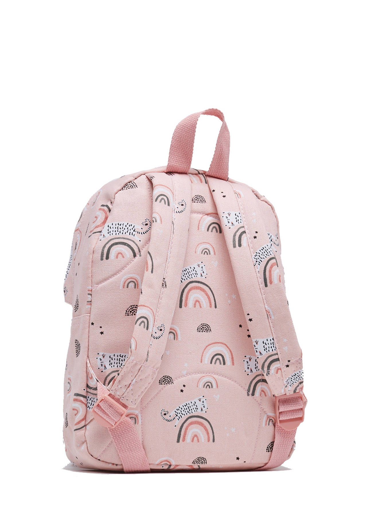 30 cm - 4 liters - 0.22 kg ~ It's impossible not to melt in front of this Kidzroom backpack made from a cotton blend and decorated with rainbows and felines. This 30 cm backpack is ideal to accompany your child when he/she starts kindergarten. Inside the main zipped compartment, your child will be able to store a small 17 x 22 cm notebook and a comforter. His little snack can be slipped into the zip pocket on the front of the bag. In addition to being cute and practical, this Kidzroom backpack is comfortable to wear thanks to its reinforced back and adjustable straps.