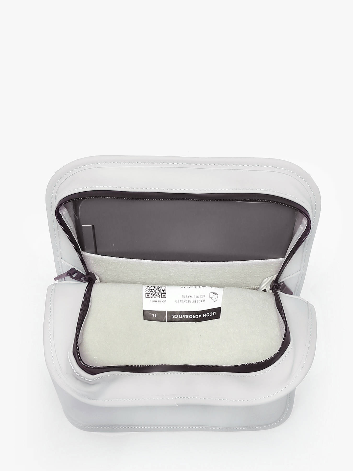 The UCON ACROBATICS backpack, made from recycled polyester, combines elegance, durability, and practicality. It features a large main compartment secured by a zip closure complemented by a magnetic flap, perfect for carrying A4 documents. Inside, two open pockets help organize essential small items. On the outside, a zippered front pocket provides quick access. Adjustable shoulder straps ensure optimal comfort for back carrying, while the sturdy handle allows hand carrying. This versatile bag perfectly meets urban needs while showcasing a strong eco-friendly commitment.