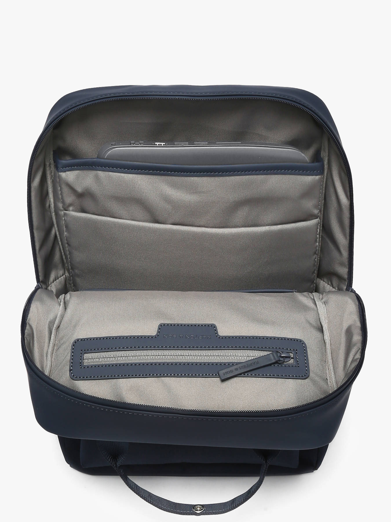 The KAPTEN AND SON backpack, made from recycled PET, combines durability and functionality for everyday use. It features one front pocket, two side pockets, and one back pocket, providing multiple practical storage options. The zip closure secures your belongings while adjustable straps ensure optimal comfort when worn on the shoulder or back. The support loop allows easy attachment to a telescopic handle, perfect for travel. Inside, it offers a main compartment with two simple pockets and one zipped pocket, plus a dedicated laptop pocket up to 15 inches and a special tablet compartment. This backpack can hold A4 folders and notebooks up to 24x32 cm, making it ideal for students and professionals on the move. Its modern, eco-friendly design makes KAPTEN AND SON a practical and responsible choice.