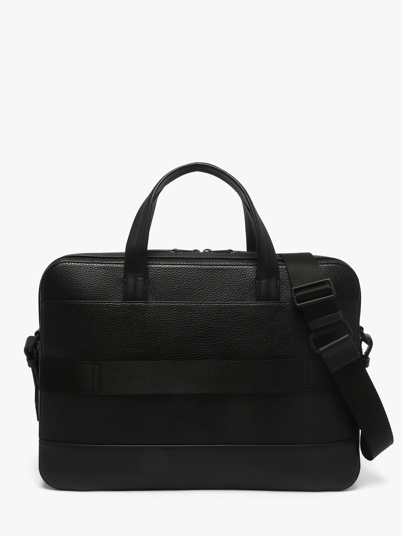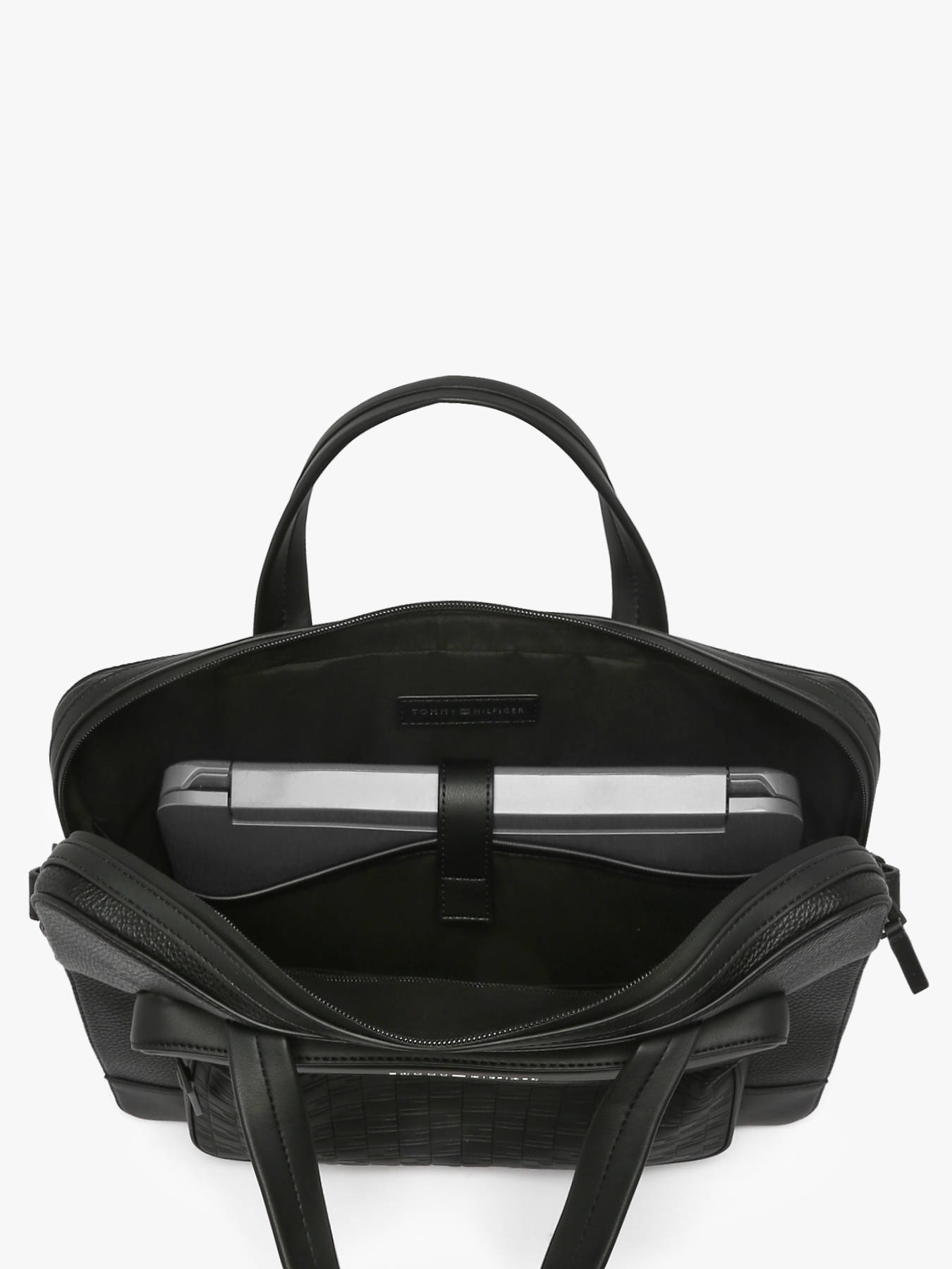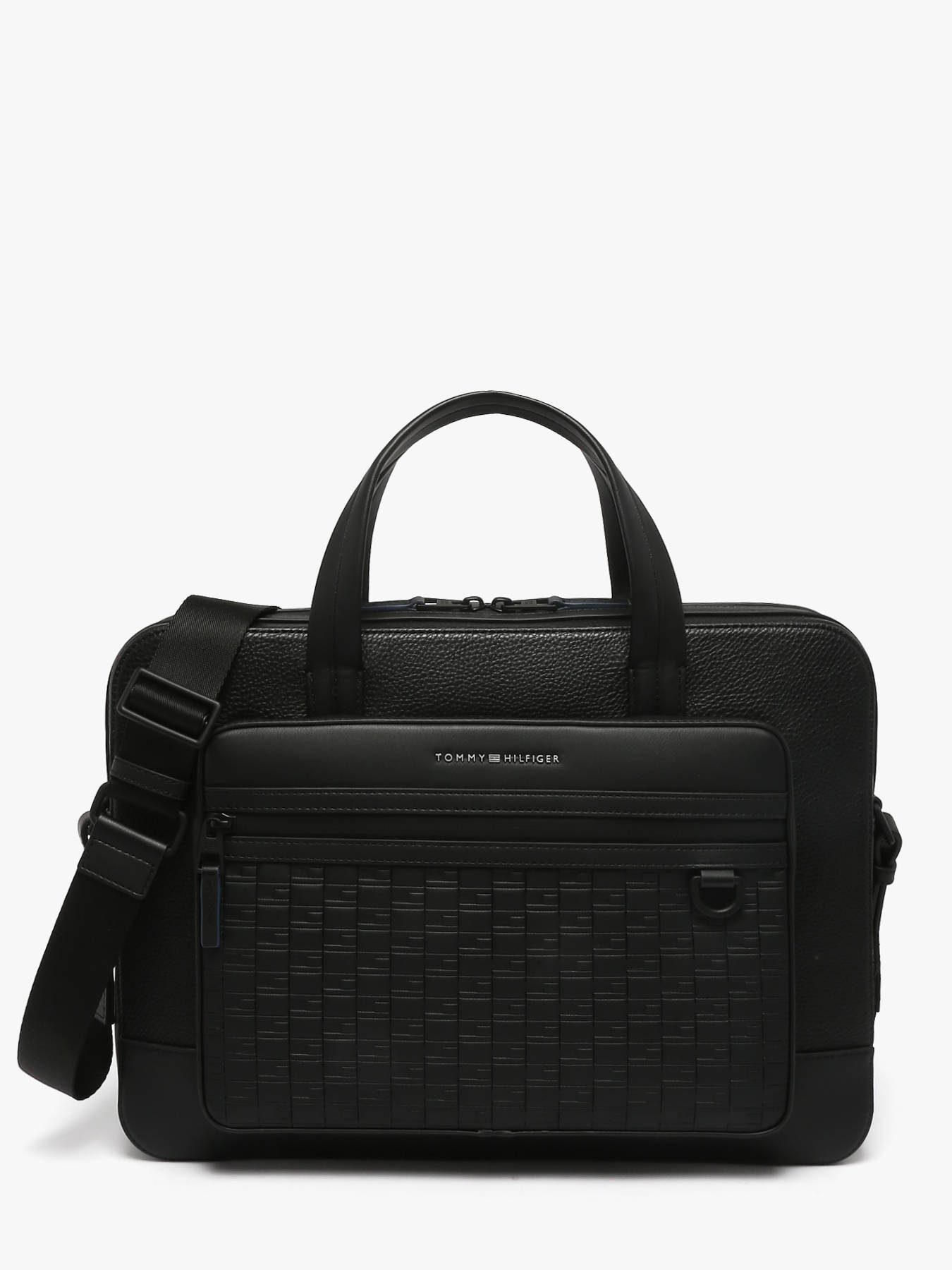 The Tommy Hilfiger document holder, made from recycled P.E.T, combines durability with contemporary design. Its exterior features a practical front pocket and secure zip closure. It includes an adjustable shoulder strap for comfortable crossbody wear and a support loop for telescopic handle compatibility, making transport easier. Inside, there is a spacious main compartment with two simple pockets and one zip pocket for optimal organization. It is specially designed to hold a laptop up to 15.6 inches, perfect for professionals on the go. This document holder blends functionality, style, and environmental responsibility.