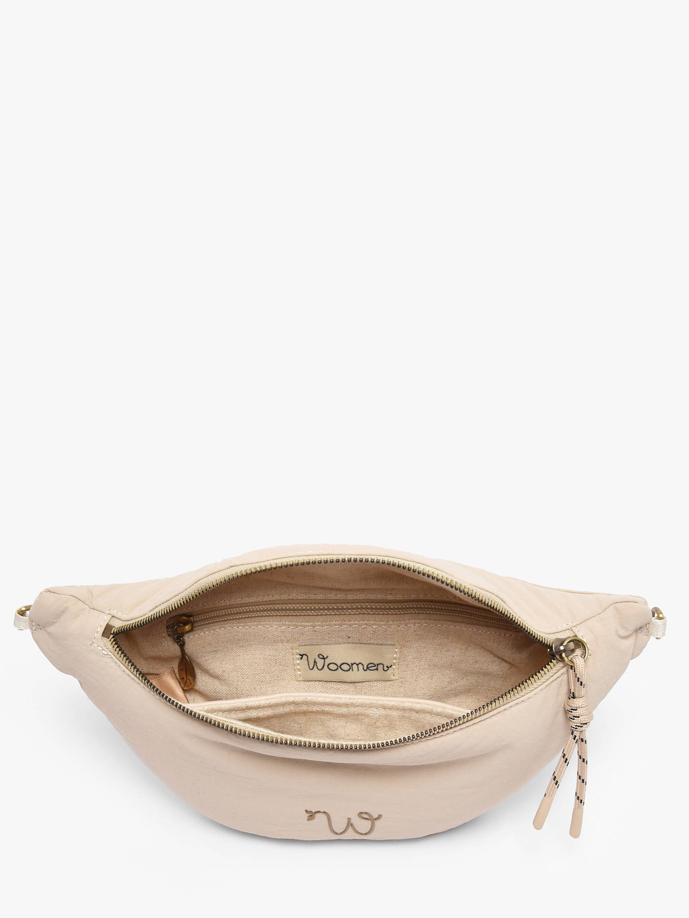 The Woomen Primevère belt bag combines contemporary style with everyday practicality. Crafted from recycled nylon, it offers lightweight durability while reflecting a more responsible approach. Featuring a secure zip closure, it is designed with an adjustable and removable strap for versatile wear—around the waist or crossbody, depending on your style. Its main compartment easily holds your essentials, while inside, a slip pocket and a zip pocket ensure simple and efficient organization of your belongings.