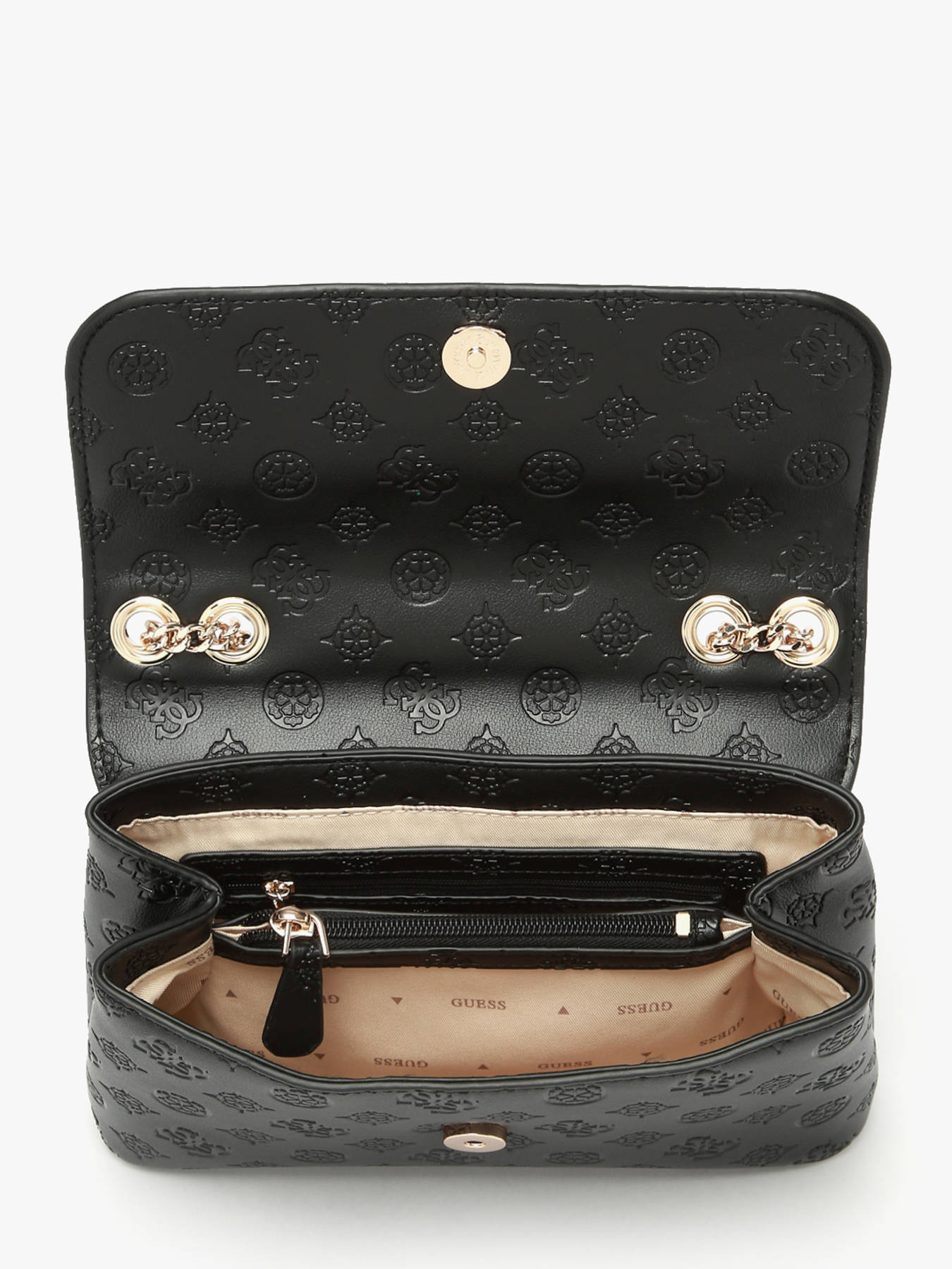 The DITA GUESS shoulder bag, made of P.U., combines elegance and practicality. Its exterior features a magnetic flap closure for easy and secure access to your belongings. It includes a back pocket for additional storage. The 32 cm handle height allows comfortable shoulder wear, while the adjustable strap offers the option to wear it crossbody. Inside, the bag has two well-organized compartments, including a zippered pocket to keep valuables safe. It also offers three card slots, perfect for keeping essentials within reach. The DITA GUESS is ideal for daily use, blending style and function seamlessly.