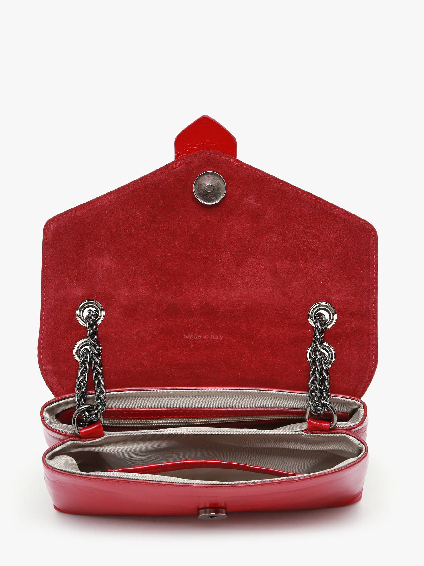 The ETRIER JANA AMOUR crossbody bag is available in two sizes, presented here in its mini version. Offered in new seasonal colors, this beloved model has been crafted in Italy. Its slightly shiny leather with a crackled effect and quilted design adds uniqueness to this handbag. Made of cowhide leather, it closes with a flap secured by a magnetic snap. Featuring a chain and leather shoulder strap, it can be worn crossbody or over the shoulder. Inside, two compartments accommodate a slip pocket and a zip pocket, all lined with cotton for a polished finish.