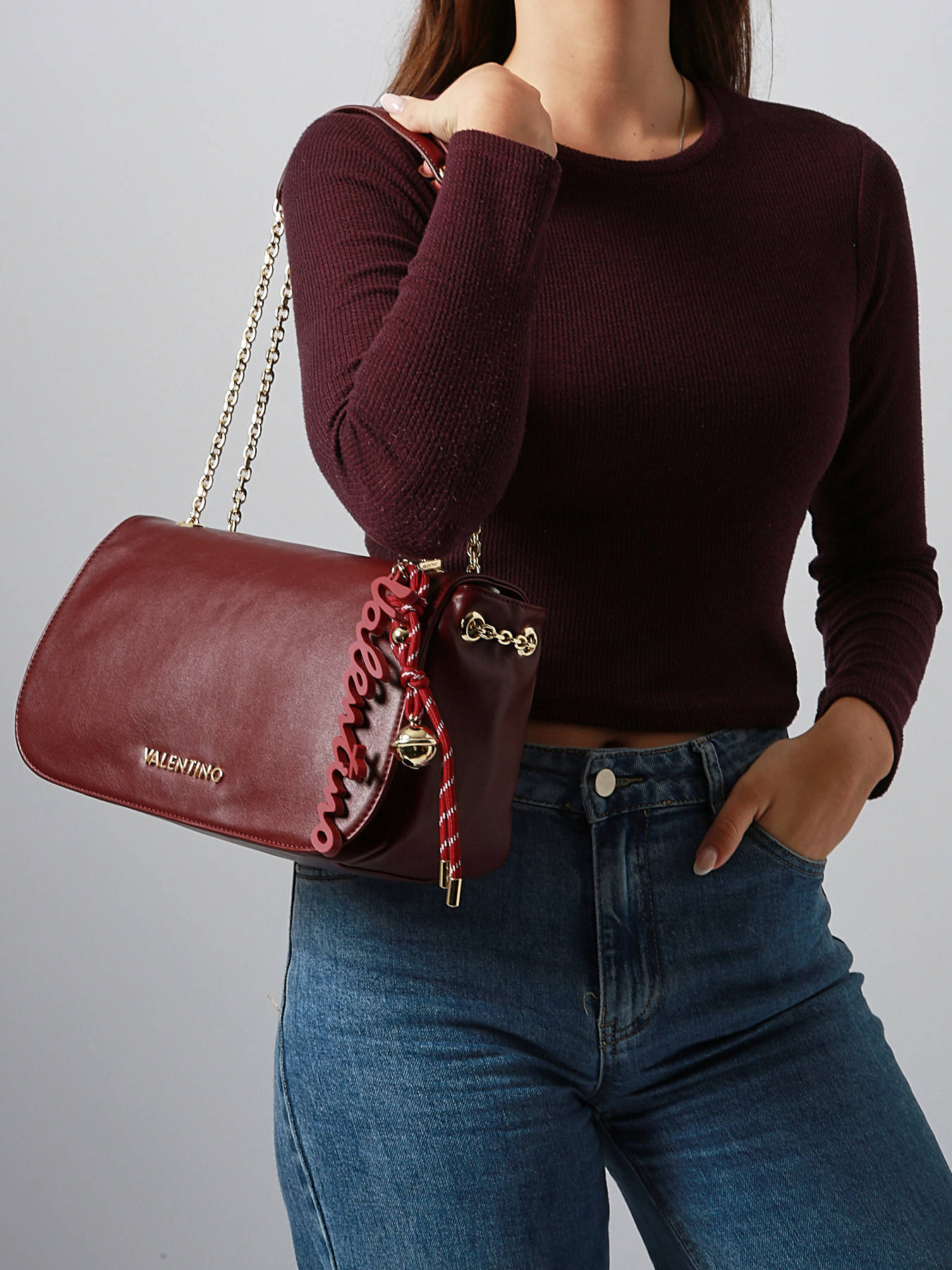 The WINTER RE crossbody bag by VALENTINO combines elegance and practicality for everyday use. Made of coated canvas, it offers lightness, durability, and easy maintenance. Its magnetic flap closure ensures security and quick access to your belongings, while the 110 cm shoulder strap and 30 cm handle height provide comfortable crossbody or shoulder wear. Inside, a main compartment, a simple pocket, and a zipped pocket offer organized storage for your essentials. Available in three different colors, the WINTER RE VALENTINO bag combines modern design, functionality, and style, making it ideal to elegantly and refinedly complete your outfits.