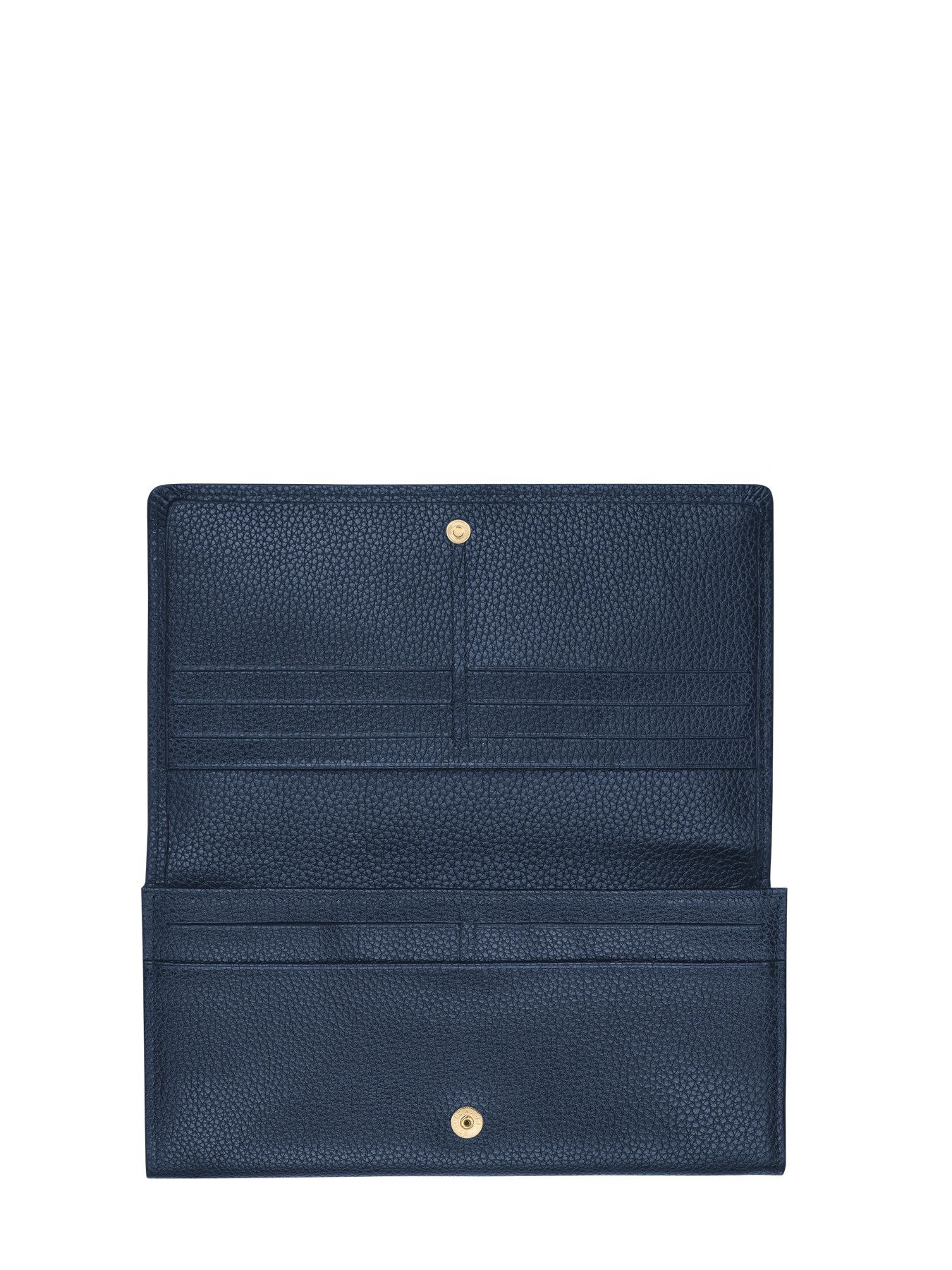 This long wallet with a 2 gusset flap from Lonchamp has a complete layout that can hold coins, 14 credit cards and papers. The emblematic line of Longchamp, LE FOULONNÉ draws its strength from the grain from which it takes its name. Supple and robust, discreet but perfectly identifiable, the models in the line are timeless classics that never cease to reinvent themselves. With its signature full grain, the cowhide leather reveals a refined sensual texture. It underlines the sober and rational spirit of the models in the line, in a wide range of colours.