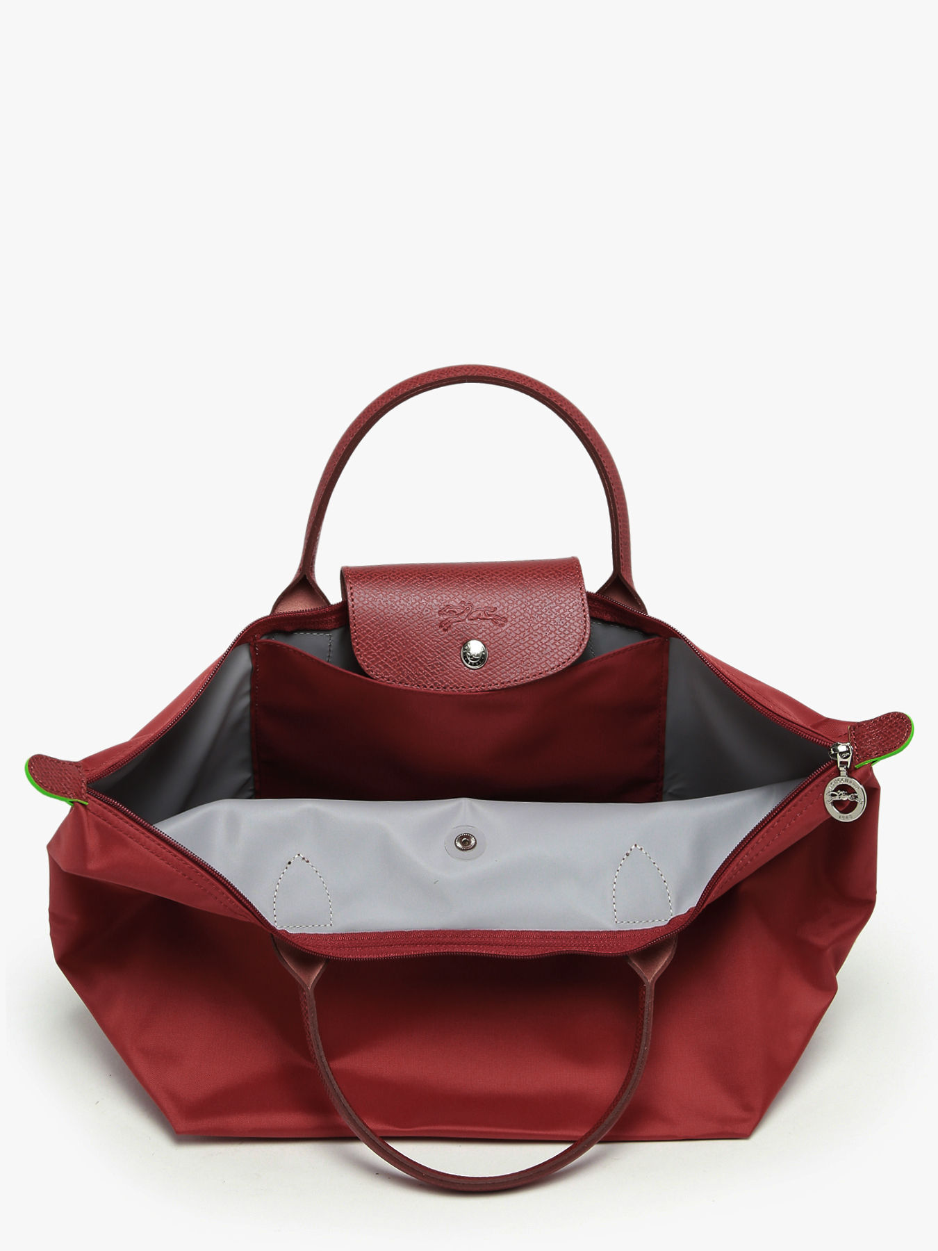 Here is the M version of the Le Pliage Green handbag from Longchamp. This women's handbag is a revisited version of the famous Le Pliage handbag. It is part of an approach that aims to protect the environment thanks to its recycled materials. You will love to find all the codes of the Le Pliage line such as the iconic shape, the logo on the front and the small flap with snap. For a walk in the city or for shopping, this woman handbag will be perfect. It offers a medium sized interior with a small single pocket for your small items. Match this Le Pliage Green handbag by Longchamp with a trendy outfit and you will be perfect.