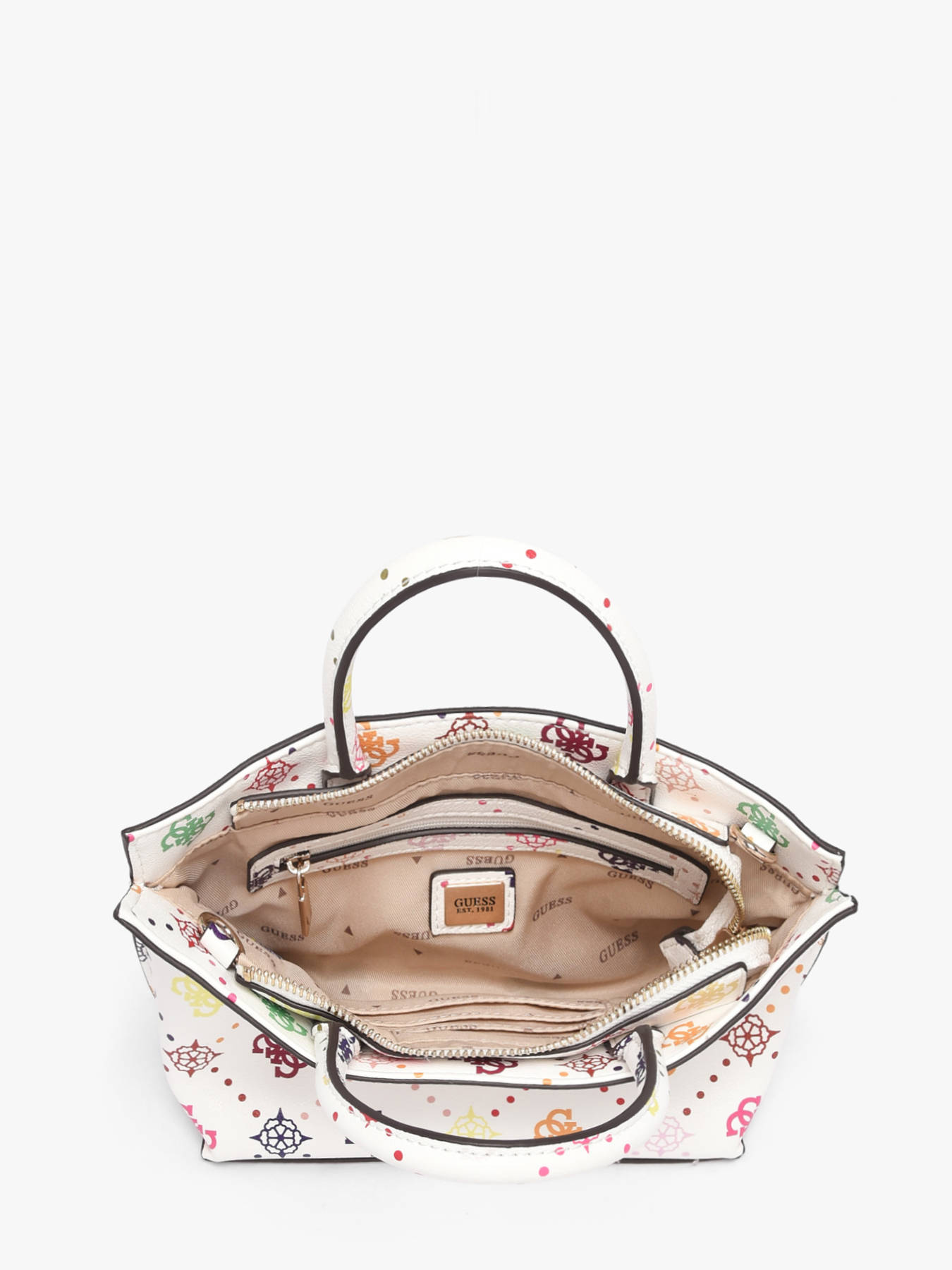 The EMELIE LOGO GUESS handbag in PU combines modern elegance with everyday practicality. Its zip closure keeps your belongings secure, while the interior features one main compartment, a zip pocket, and three card slots, allowing you to organize your essentials efficiently and stylishly. The adjustable and detachable strap allows it to be carried by hand or crossbody according to your preference, while the 9 cm handle height ensures optimal comfort. Compact and structured, this bag perfectly complements urban or sophisticated outfits, adding a chic and contemporary touch to your look. Every detail, from the quality PU material to the refined finishes, reflects GUESS’s craftsmanship, making this bag a trendy, practical, and elegant accessory for those seeking style and organization every day.