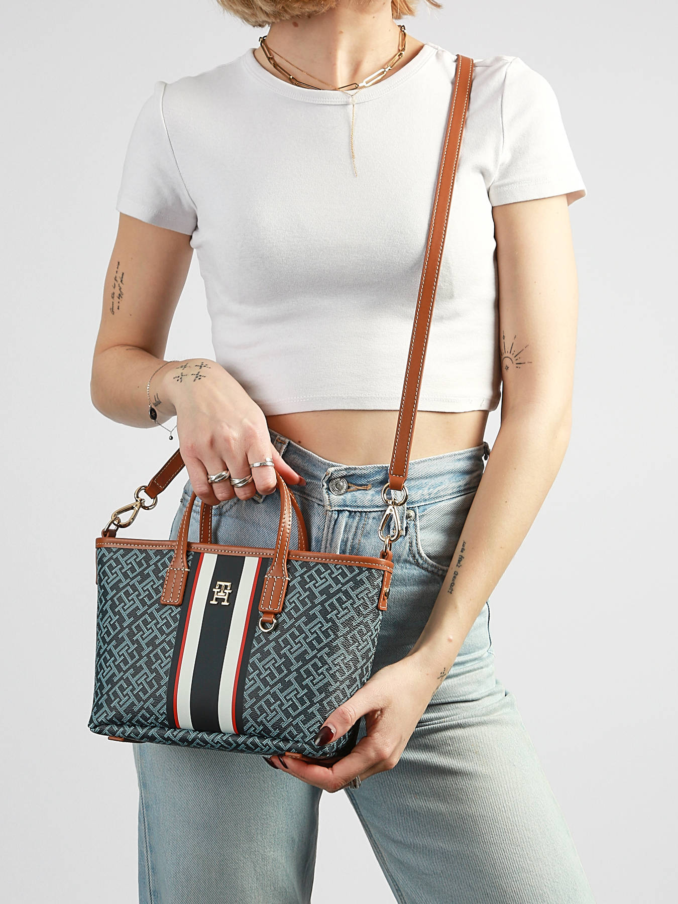 The TH MONOPLAY TOMMY HILFIGER handbag in coated canvas with leather trim combines modern style with everyday practicality. Its zip closure keeps your belongings secure while providing quick access to your essentials. Inside, one main compartment offers simple and organized storage for your items. Compact and lightweight, this bag can be carried by hand with its 7 cm handle height or worn crossbody thanks to its adjustable and removable strap, ensuring comfort for all activities. Its clean and structured design adds a chic and contemporary touch to any outfit, ideal for daily, urban, or professional use. The quality materials and refined finishes reflect TOMMY HILFIGER craftsmanship, making this bag a durable, practical, and stylish accessory, perfect for accompanying your day with elegance and ease.