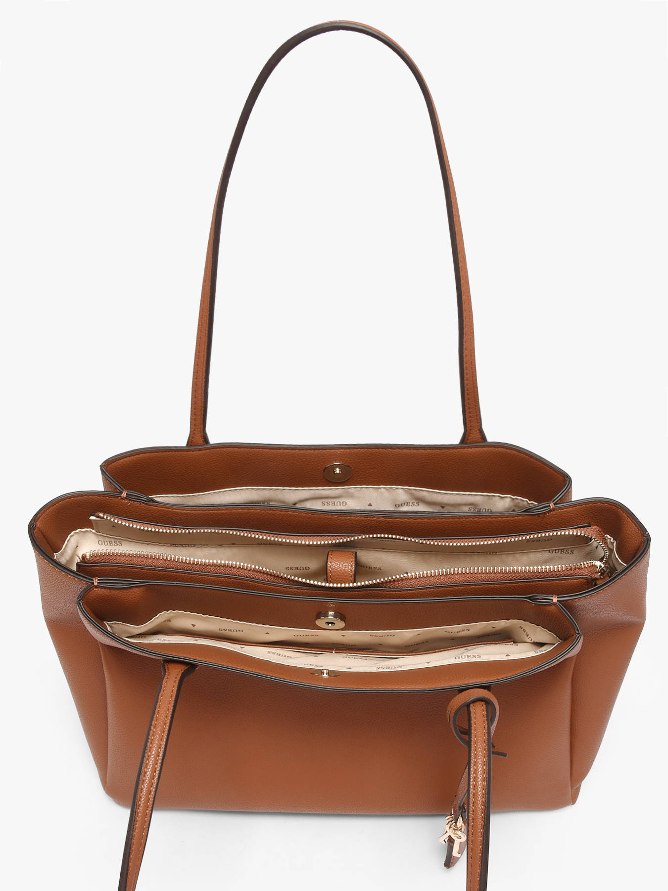 The ISOLA GUESS shoulder bag in PU combines modern elegance with practicality. Its zip-and-magnetic closure keeps your belongings secure while providing quick access to essentials. Inside, three compartments, a zip pocket, and two slip pockets allow you to organize your personal items efficiently and stylishly. On the outside, a back pocket offers practical storage for must-have items. With a 26 cm handle height, it can be comfortably worn on the shoulder, combining comfort and elegance. Compact and structured, this bag perfectly complements urban or sophisticated looks, adding a chic and contemporary touch to any outfit. Every detail, from the refined finishes to the quality PU material, reflects GUESS’s craftsmanship, making this bag a trendy, practical, and elegant accessory—ideal for those seeking style, organization, and comfort every day.
