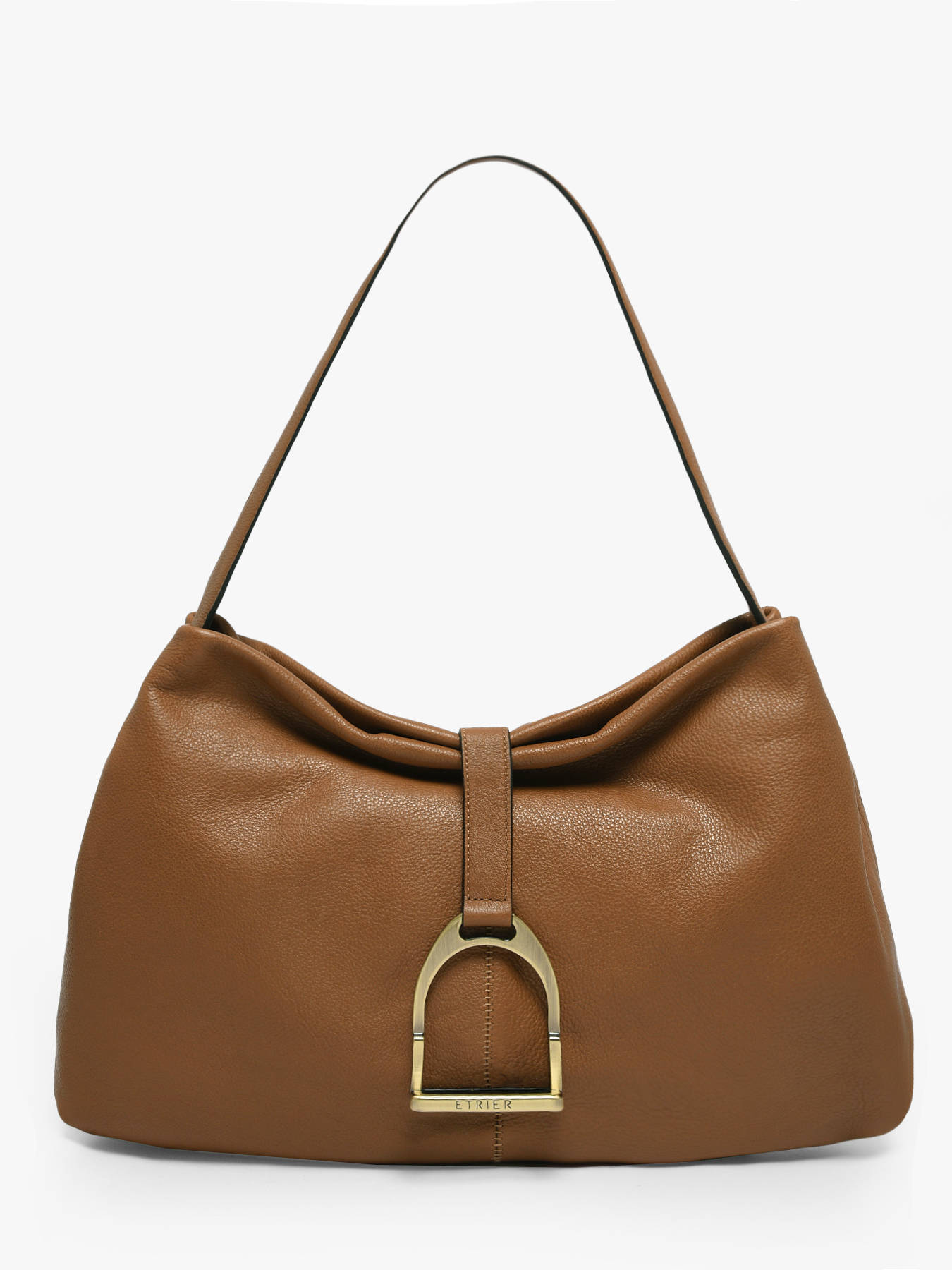 Combining elegance and practicality, the ETALON M bag is a must-have in the feminine wardrobe. Made from full-grain cowhide leather, it showcases refined lines and a resolutely modern look. Its comfortable shoulder carry, ensured by a 25 cm handle, makes it an ideal everyday companion. The magnetic closure, highlighted by the delicately suspended signature stirrup jewel, adds a precious and stylish touch. Its generous volume accommodates all your essentials thanks to three interior compartments, including one zipped compartment, for optimal organization. A leather ETRIER bag that is both functional and stylish.